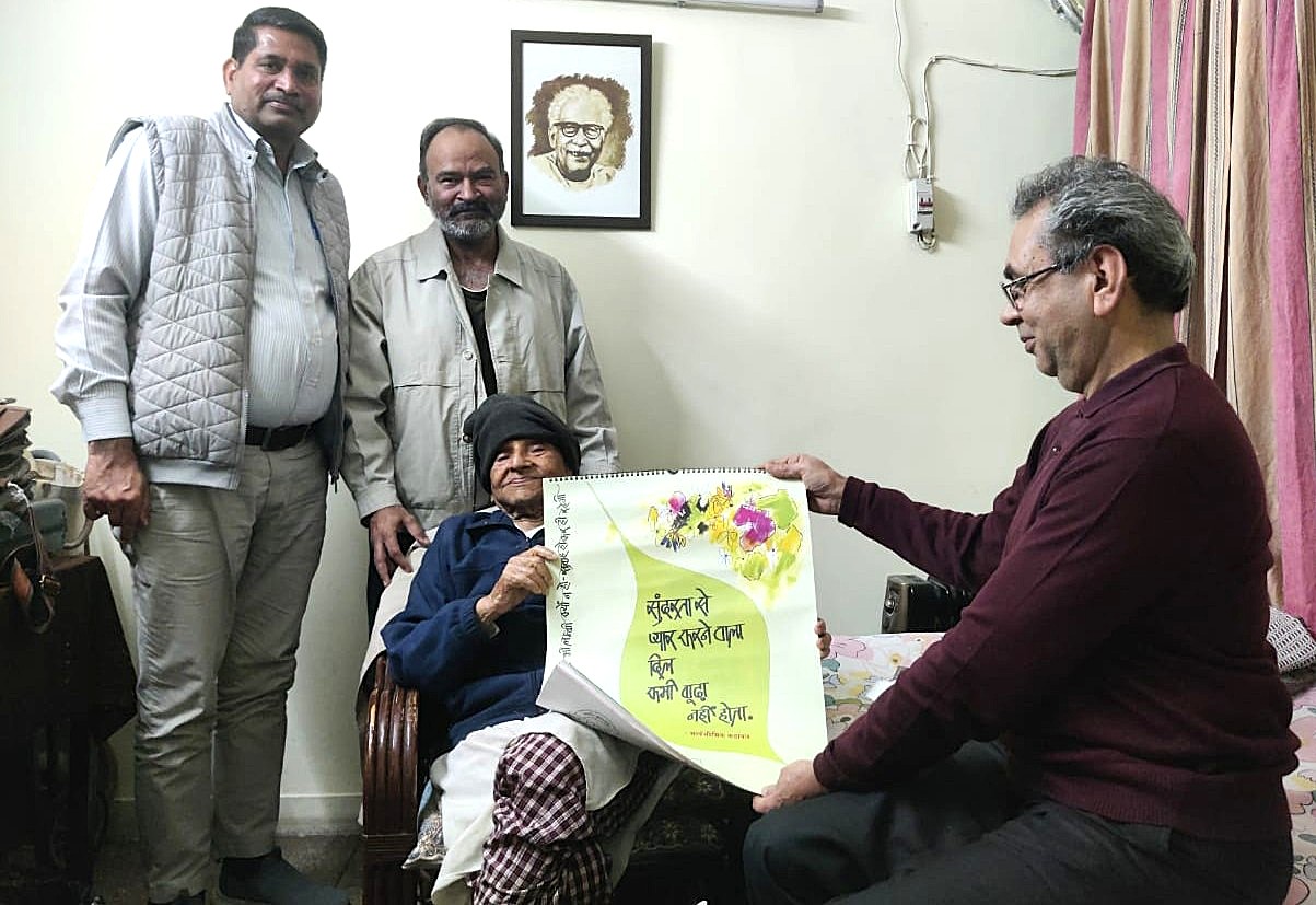 तो हर महीने की अलग खुसूसियात हैं लेकिन फिर भी फ़रवरी का महत्त्व इस लेख में इस बात से बढ़ जाता है कि 16 फ़रवरी को समूचे हिन्दी साहित्य के और प्रगतिशील लेखक संघ के महान लेखक विश्वनाथ त्रिपाठी जी का जन्मदिन भी आता है। तो बात यह कि फ़रवरी के महीने में मैं, डॉ. वेदप्रकाश, डॉ. नीरज और होने वाले या हो चुके डॉ. ओम, विश्वनाथ जी के घर पर बैठे थे। नये साल के तोहफ़े के तौर पर मैं अशोक दुबे और मुकेश बिजौले द्वारा बनाया गया रूपांकन, इंदौर का एक कैलेंडर उनके लिए लेकर गया था। इस बरस का कैलेंडर देशी-विदेशी कहावतों पर है जिसके आवरण पर ही मेरी पसंदीदा कहावत लिखी हुई है कि – “पेड़ सबको छाया देता है, लकड़हारे को भी।” बहरहाल, कैलंडर का फ़रवरी महीना खोलकर विश्वनाथ जी से विमोचन करवाया गया तो फ़रवरी के पन्ने पर लिखा था – “सुंदरता से प्यार करने वाला दिल कभी बूढ़ा नहीं होता।” मैंने उसमें जोड़ा कि “ऐसे दिलों के संपर्क में रहने वाले भी कभी बूढ़े नहीं होते।” सुनकर त्रिपाठी जी थोड़े समय सोचते रहे, फिर बोले – “बुढ़ापे का सौन्दर्य होता है लेकिन सौन्दर्य कभी बूढ़ा नहीं होता।” यह वाक्य जितनी बार दोहराता हूँ उतनी बार ‘वाह’ निकलती है।